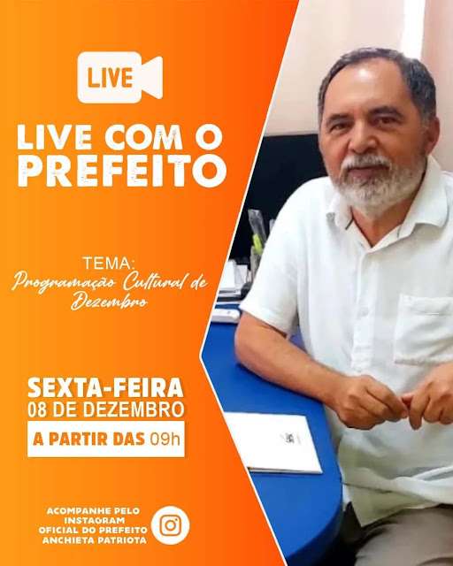 Então, marque na sua agenda: sexta-feira, dia 08, as 09 hrs. Acompanhe a transmissão ao vivo pelo Instagram do prefeito Anchieta Patriota.