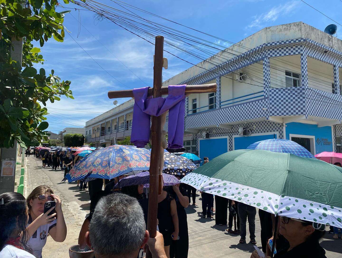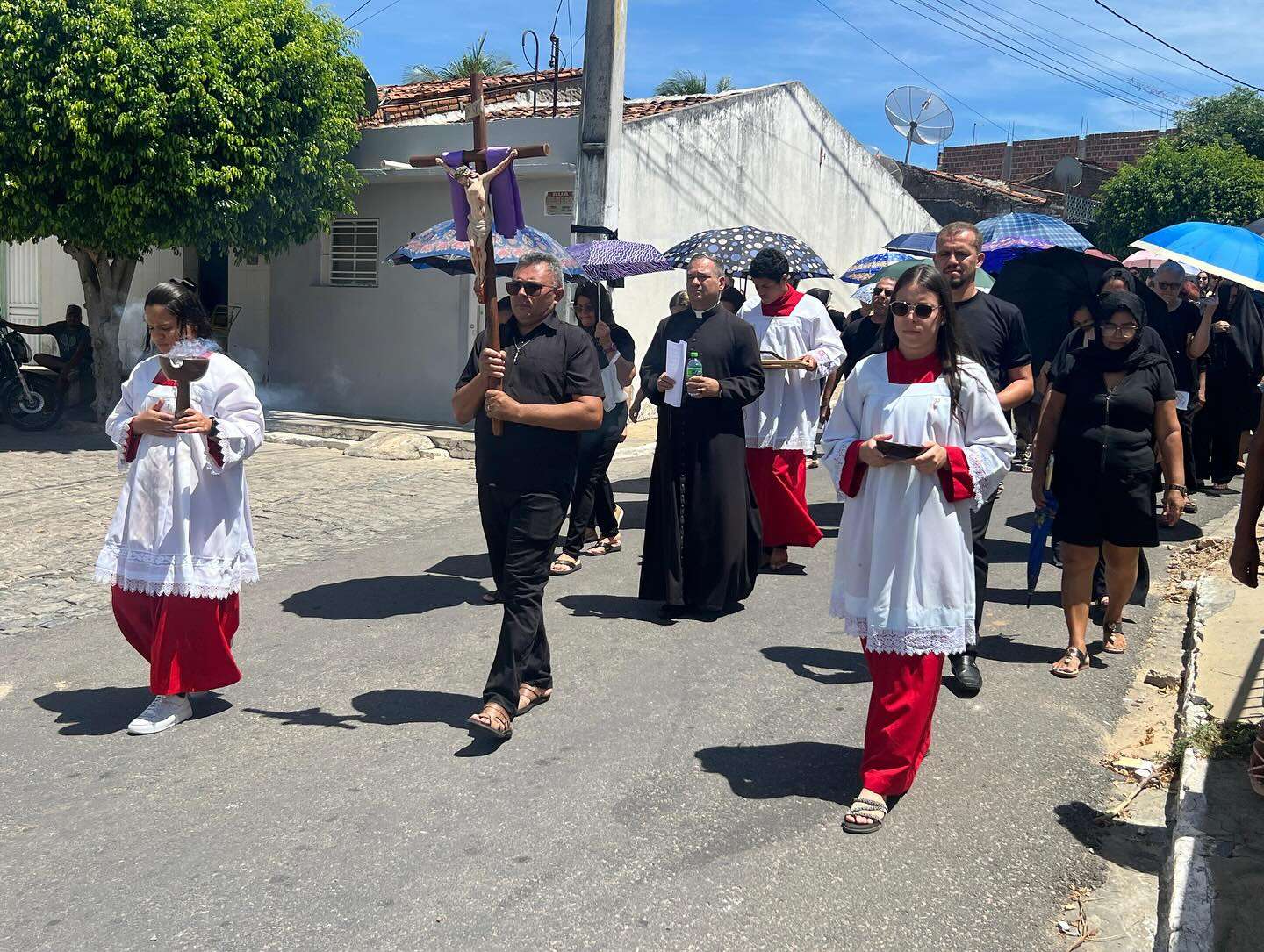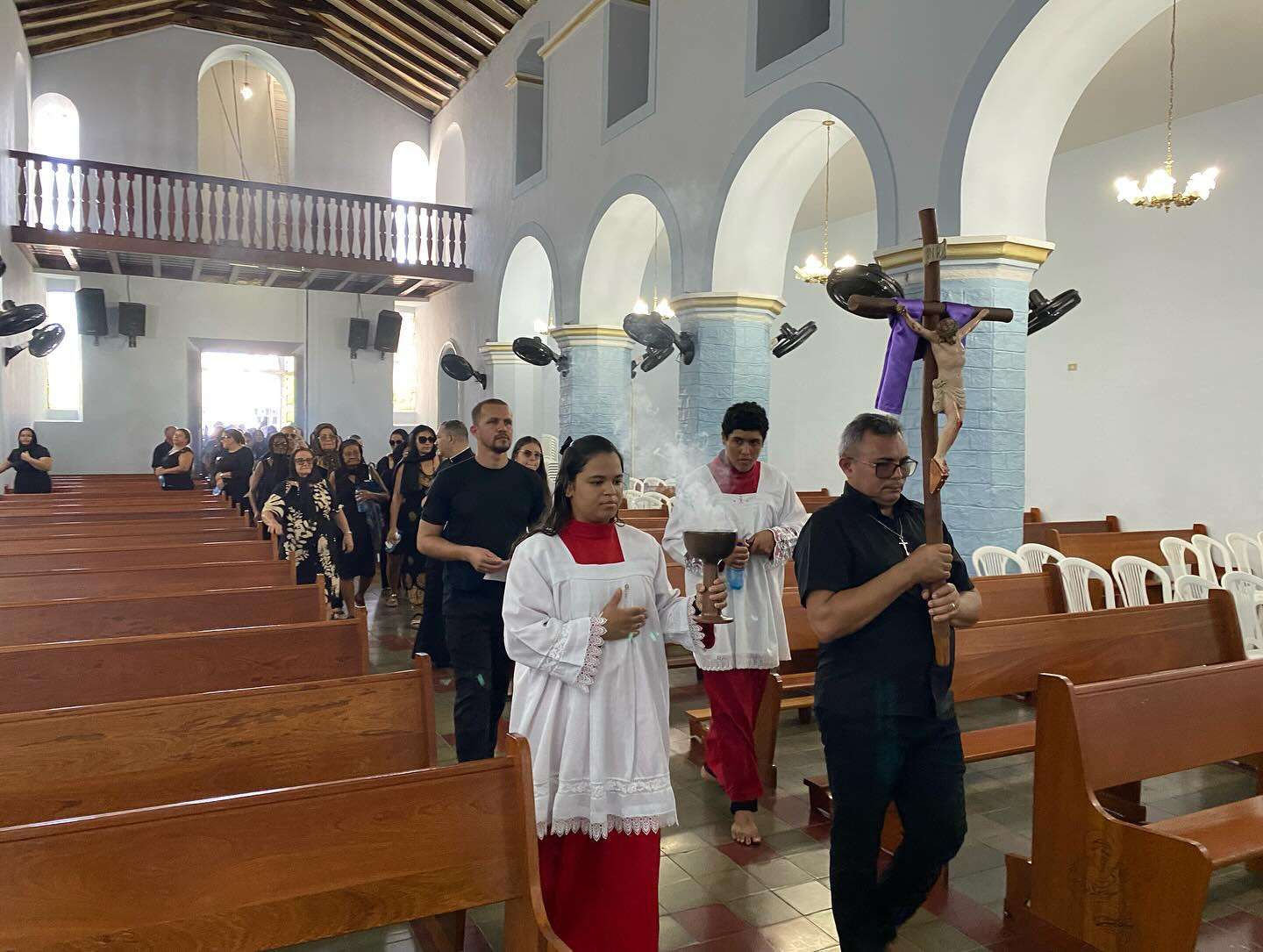 Logo após, acompanhados do Padre Edilberto Aparecido, os fiéis seguiram em procissão silenciosa até a Igreja Matriz de Santo Antônio e São João Maria Vianney, em atitude de recolhimento e reverência, unidos à dor do Senhor que se entrega por toda a humanidade.