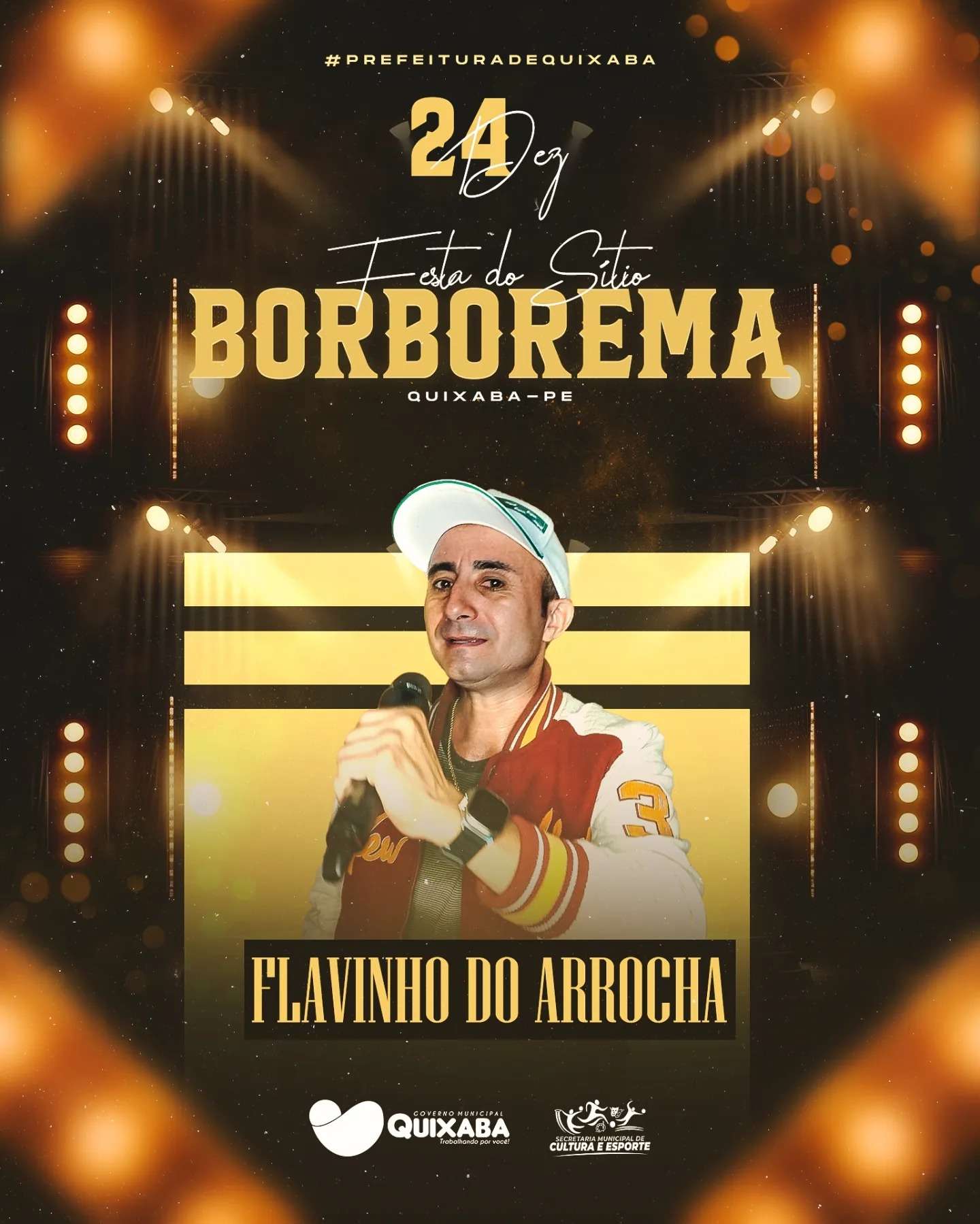 O cantor Flavinho do Arrocha, da cidade de Solidão-PE, é a atração das festividades da comunidade da Borborema, na zona rural de Quixaba em um evento promovido pelo governo municipal de Quixaba através da Secretaria Municipal de Cultura e Esportes.